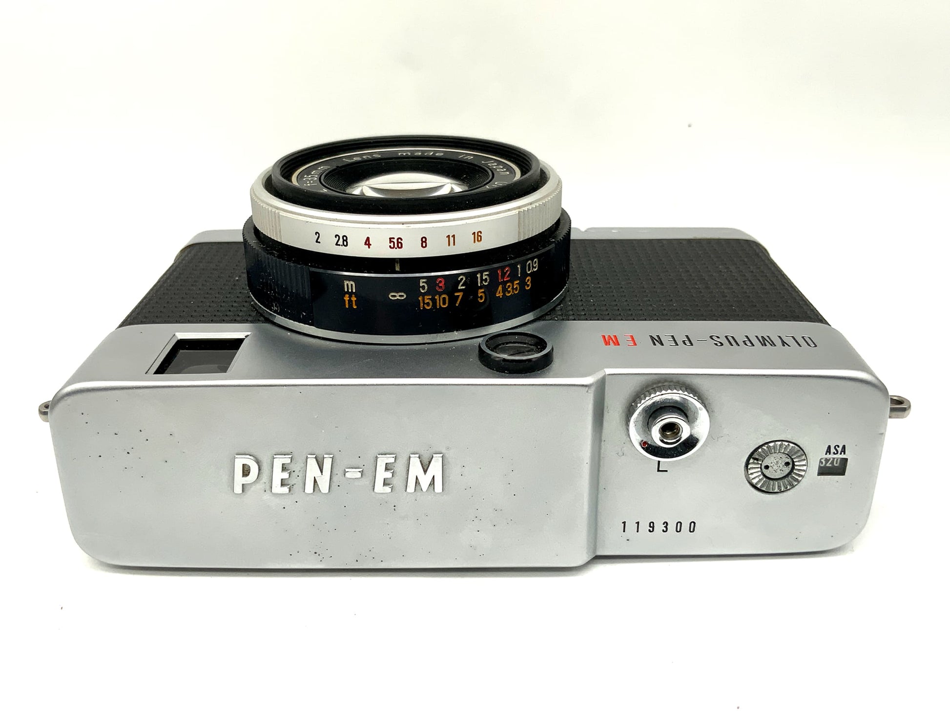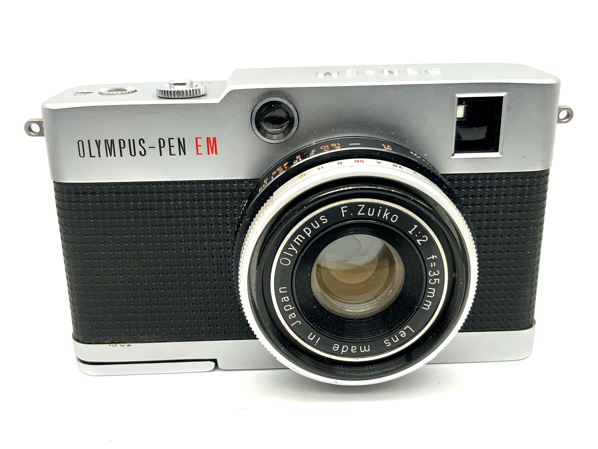 Appareil photo Olympus Pen-EM avec viseur et objectif F.Zuiko 35 mm 1:2 demi-format argentique