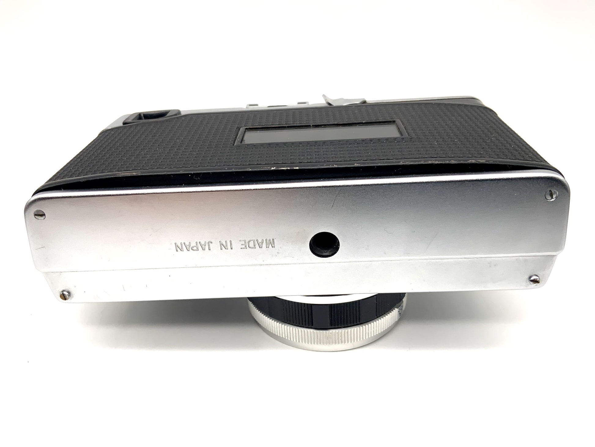Cet appareil photo argentique classique à visée directe a été inspecté techniquement et est en bon état. L'obturateur, le déclencheur, l'avancement du film et, le cas échéant, le posemètre fonctionnent parfaitement. Le boîtier présente de légères traces d'usure, normales pour son âge. Le viseur peut être légèrement poussiéreux ou opaque, ce qui est courant pour son âge, mais n'affecte pas son fonctionnement.