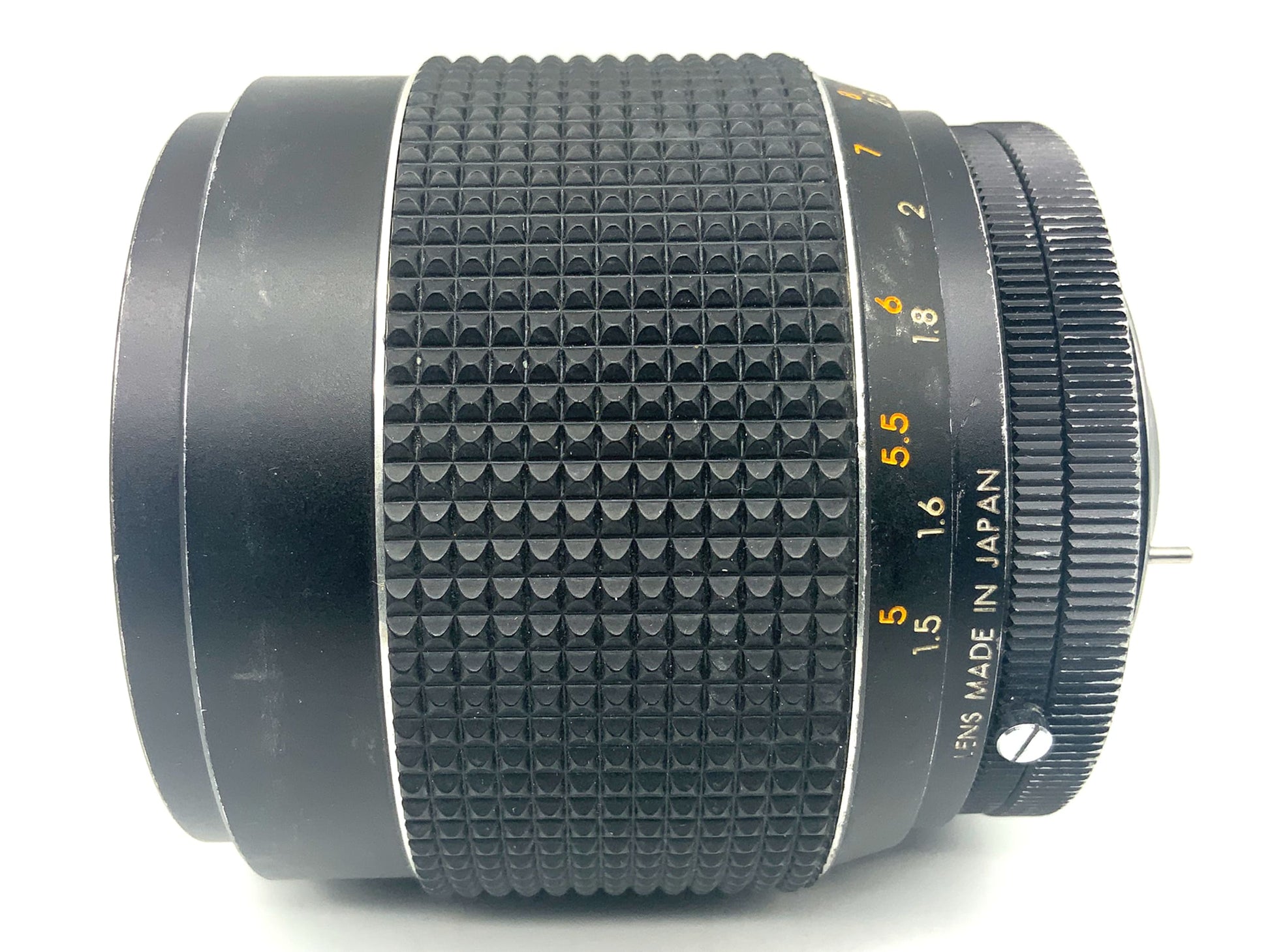 Hormis le diaphragme, l'objectif est parfaitement fonctionnel. Son état extérieur est acceptable, voire meilleur.