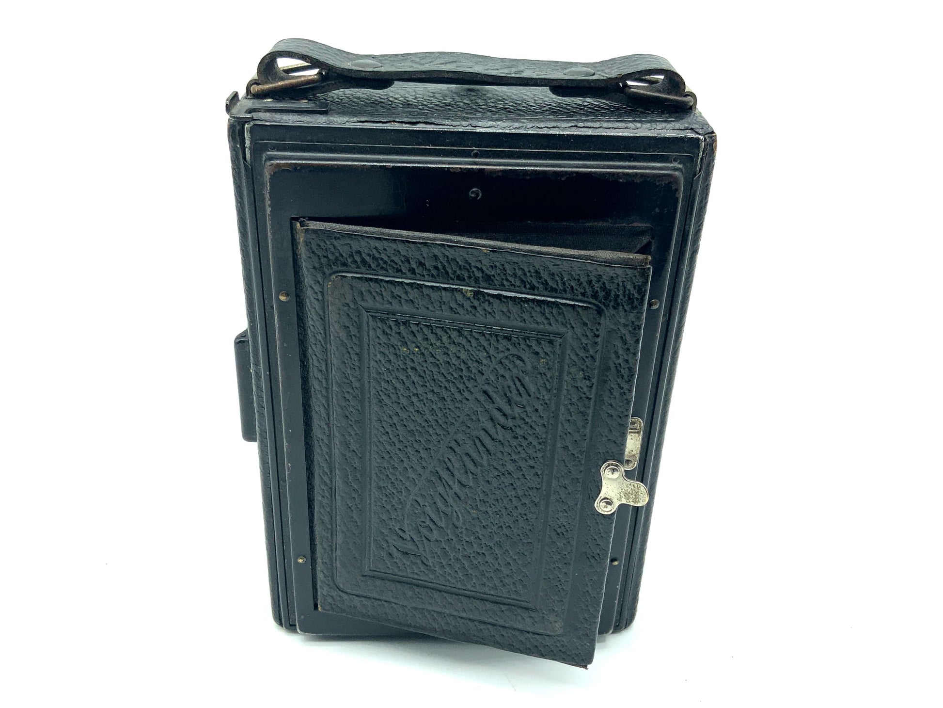 Das Gehäuse zeigt nur leichte Gebrauchsspuren wie feine Kratzer, Patina oder dezente Abnutzung – genau das, was man bei einem gut erhaltenen historischen Modell erwarten darf. Ob für Großformat-Liebhaber, Sammler oder als stilvolles Objekt – diese Kamera überzeugt durch Technik und Präsenz.