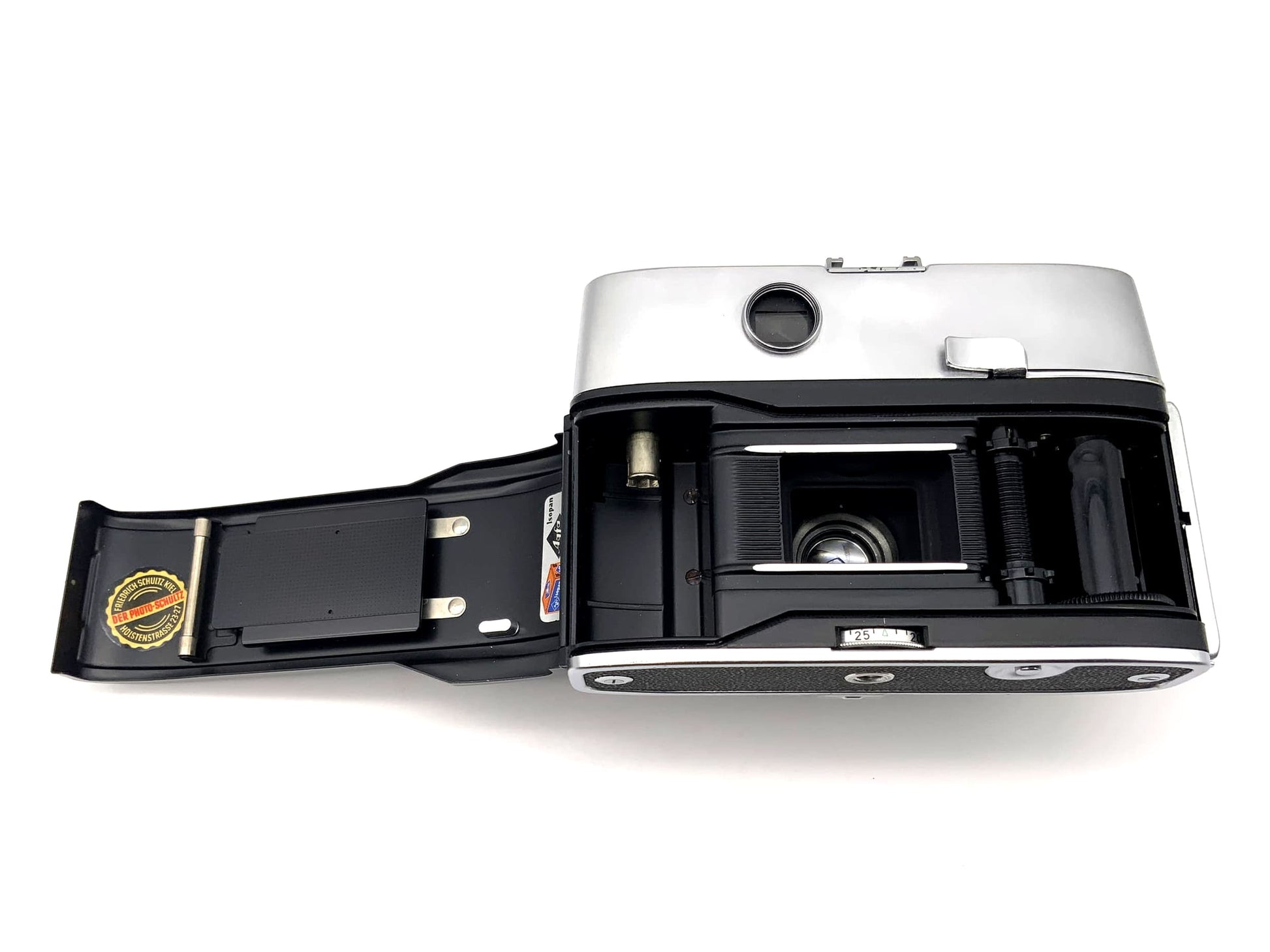 Diese Kamera funktioniert grundsätzlich: Verschluss, Auslöser und Filmtransport sind geprüft und einsatzbereit. Der Belichtungsmesser funktioniert jedoch nicht oder liefert unzuverlässige Werte. Der Zustand ist ansonsten gut oder akzeptabel mit typischen Gebrauchsspuren.