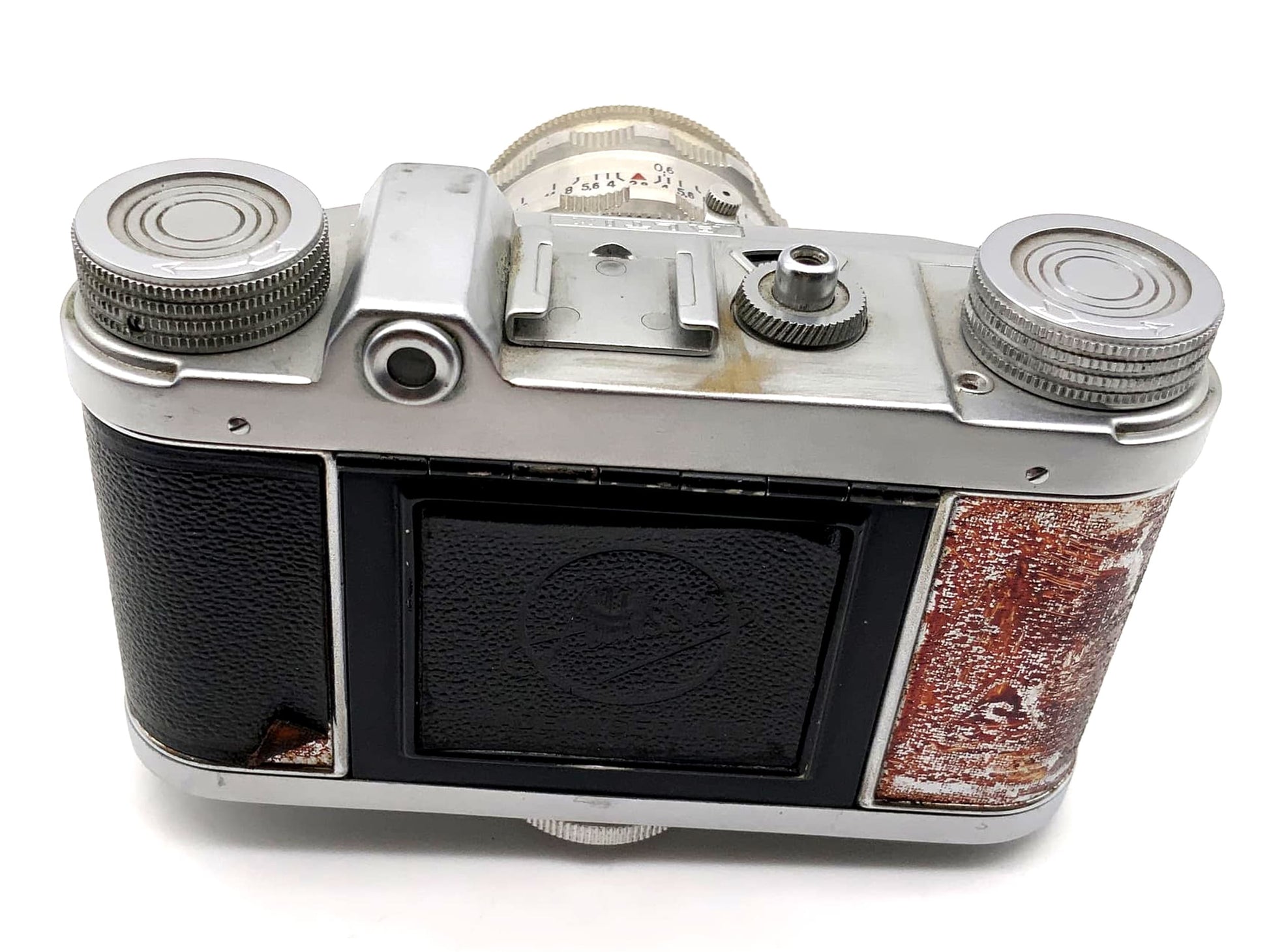 Diese analoge Sucherkamera ist technisch funktionsfähig. Verschluss, Auslöser, Filmtransport und ggf. Belichtungsmesser wurden getestet. Der Zustand wurde aufgrund sichtbarer Gebrauchsspuren – z.B. Kratzer, matte Flächen oder kleinere Dellen – als „Akzeptabel“ eingestuft. Der Sucher kann trüb oder verstaubt sein.