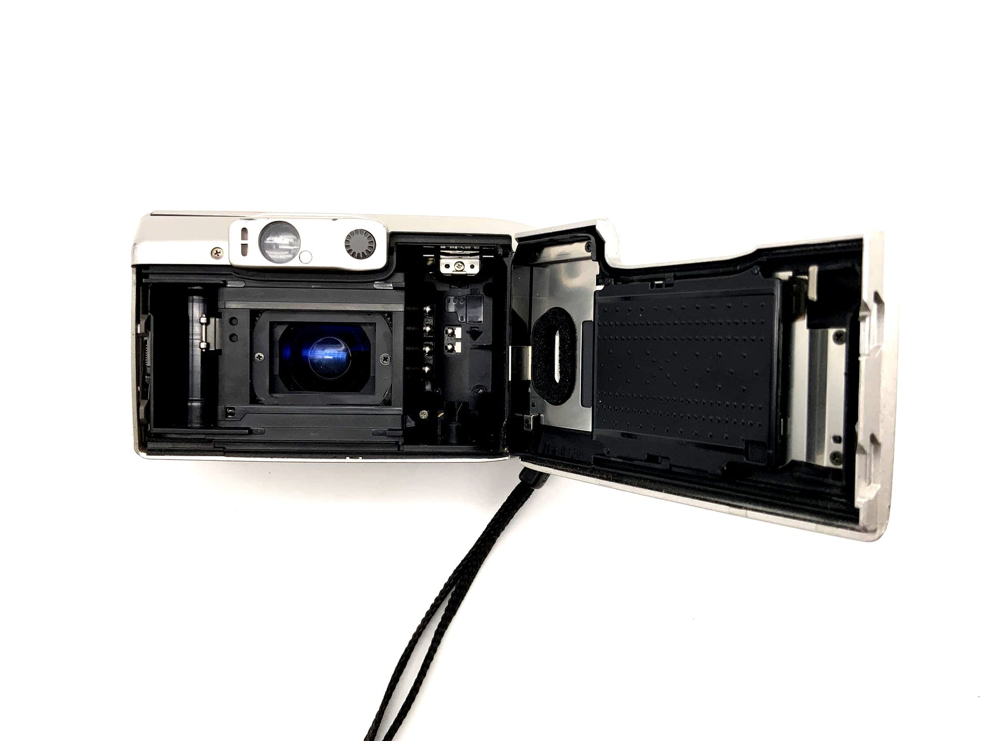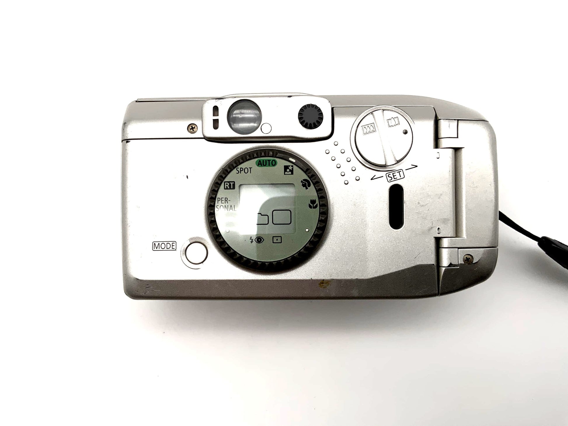 Diese gebrauchte Point-&-Shoot Kamera wurde von uns technisch geprüft und befindet sich im Zustand „Akzeptabel“. Die Kamera ist technisch voll funktionsfähig – Auslöser, Filmtransport, Autofokus und Blitz funktionieren zuverlässig.