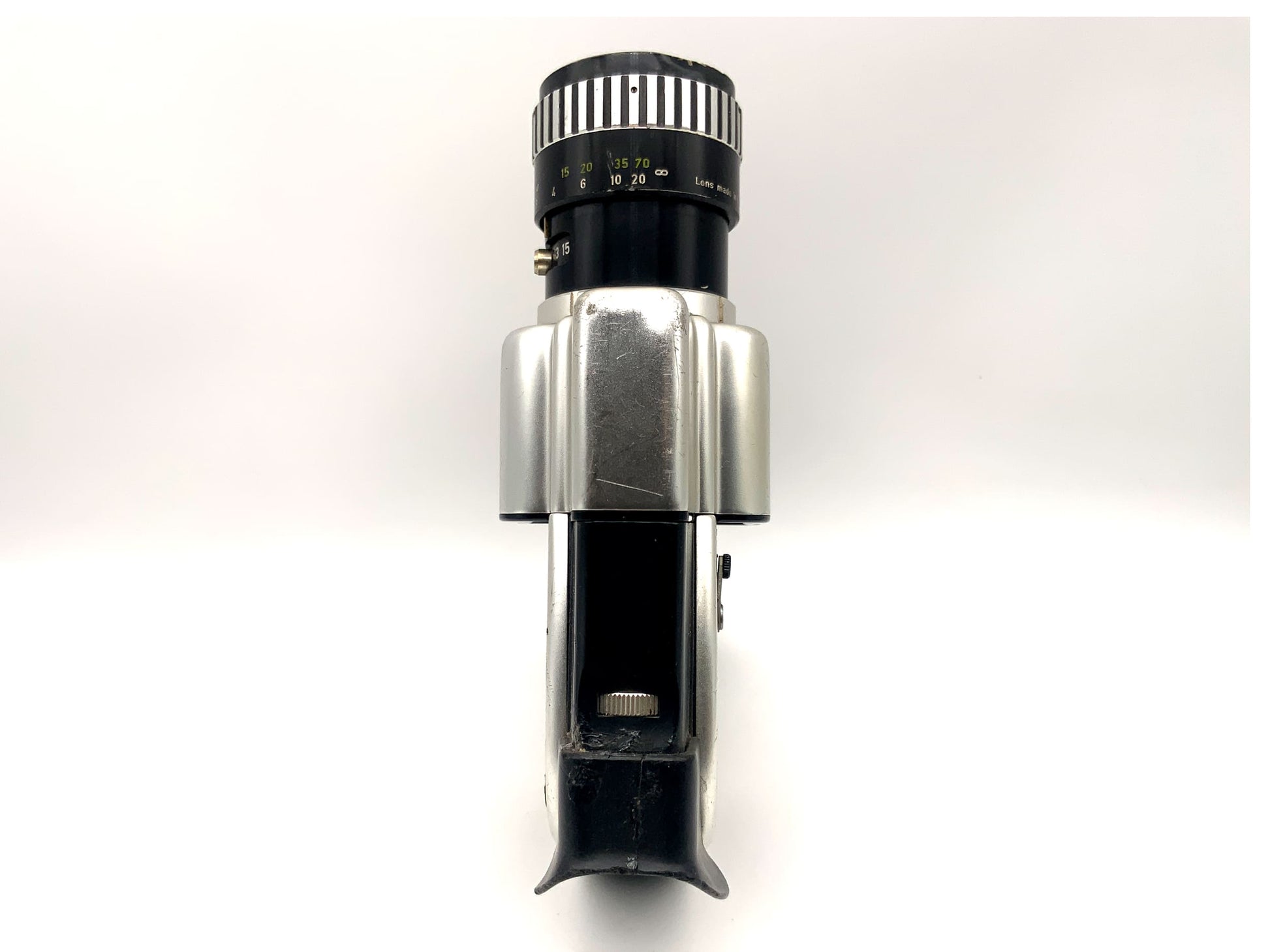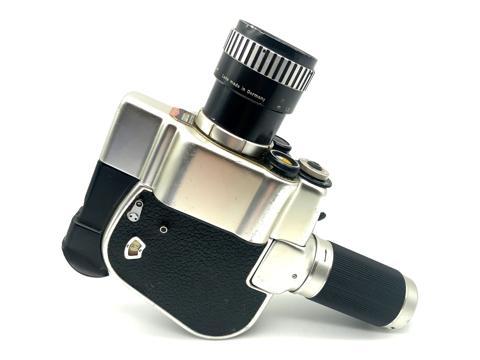 Diese Filmkamera wurde technisch geprüft und ist funktionsfähig – doch ihre bewegte Vergangenheit sieht man ihr an. Der Motor läuft, der Filmtransport funktioniert, und Sie können damit klassische Analogaufnahmen umsetzen. Gleichzeitig sind deutliche Gebrauchsspuren sichtbar.
