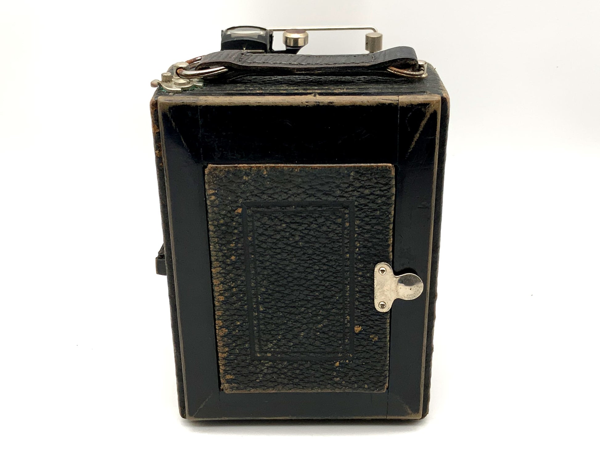 Das Gehäuse zeigt nur leichte Gebrauchsspuren wie feine Kratzer, Patina oder dezente Abnutzung – genau das, was man bei einem gut erhaltenen historischen Modell erwarten darf. Ob für Großformat-Liebhaber, Sammler oder als stilvolles Objekt – diese Kamera überzeugt durch Technik und Präsenz.