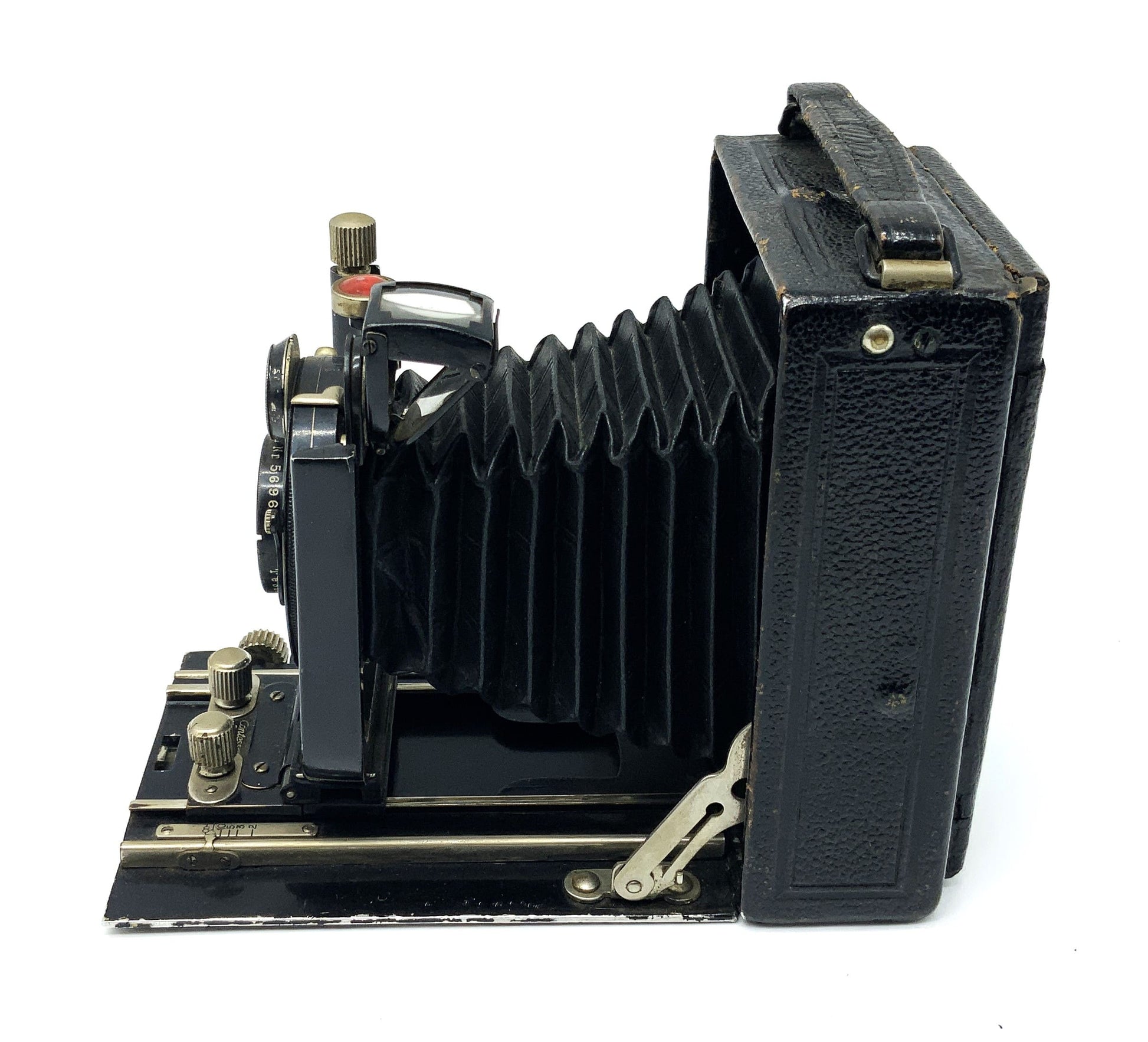 Das Gehäuse zeigt nur leichte Gebrauchsspuren wie feine Kratzer, Patina oder dezente Abnutzung – genau das, was man bei einem gut erhaltenen historischen Modell erwarten darf. Ob für Großformat-Liebhaber, Sammler oder als stilvolles Objekt – diese Kamera überzeugt durch Technik und Präsenz.