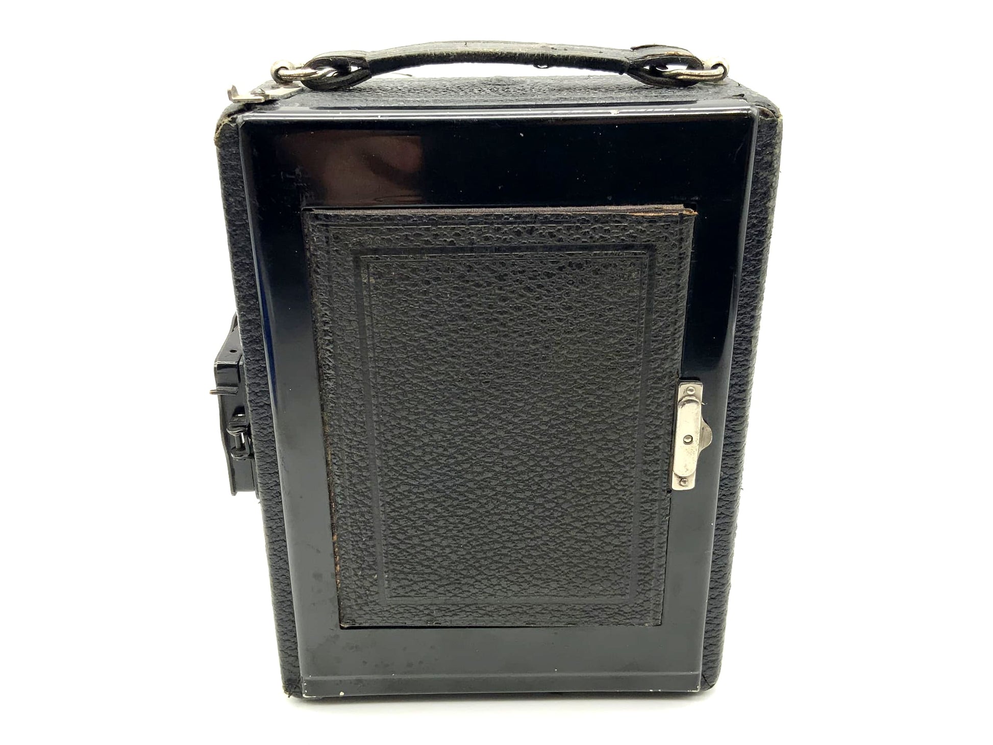 Das Gehäuse zeigt nur leichte Gebrauchsspuren wie feine Kratzer, Patina oder dezente Abnutzung – genau das, was man bei einem gut erhaltenen historischen Modell erwarten darf. Ob für Großformat-Liebhaber, Sammler oder als stilvolles Objekt – diese Kamera überzeugt durch Technik und Präsenz.
