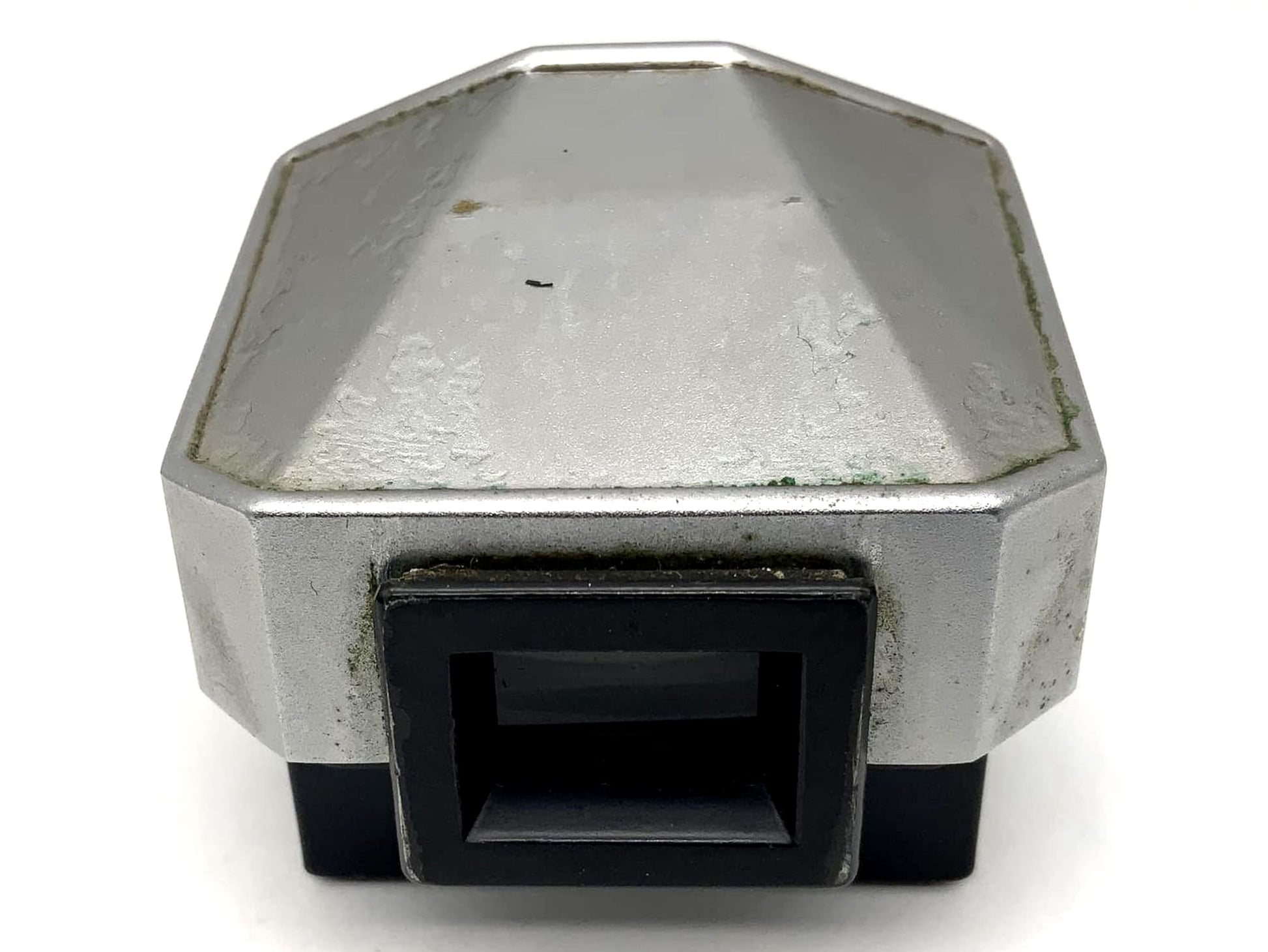 Äußerlich zeigt der Sucher lediglich leichte bis normale Gebrauchsspuren wie kleine Kratzer oder matte Stellen. Die Linse ist sauber und funktional – minimale Staubeinschlüsse sind altersbedingt möglich, schränken die Nutzung aber nicht ein.