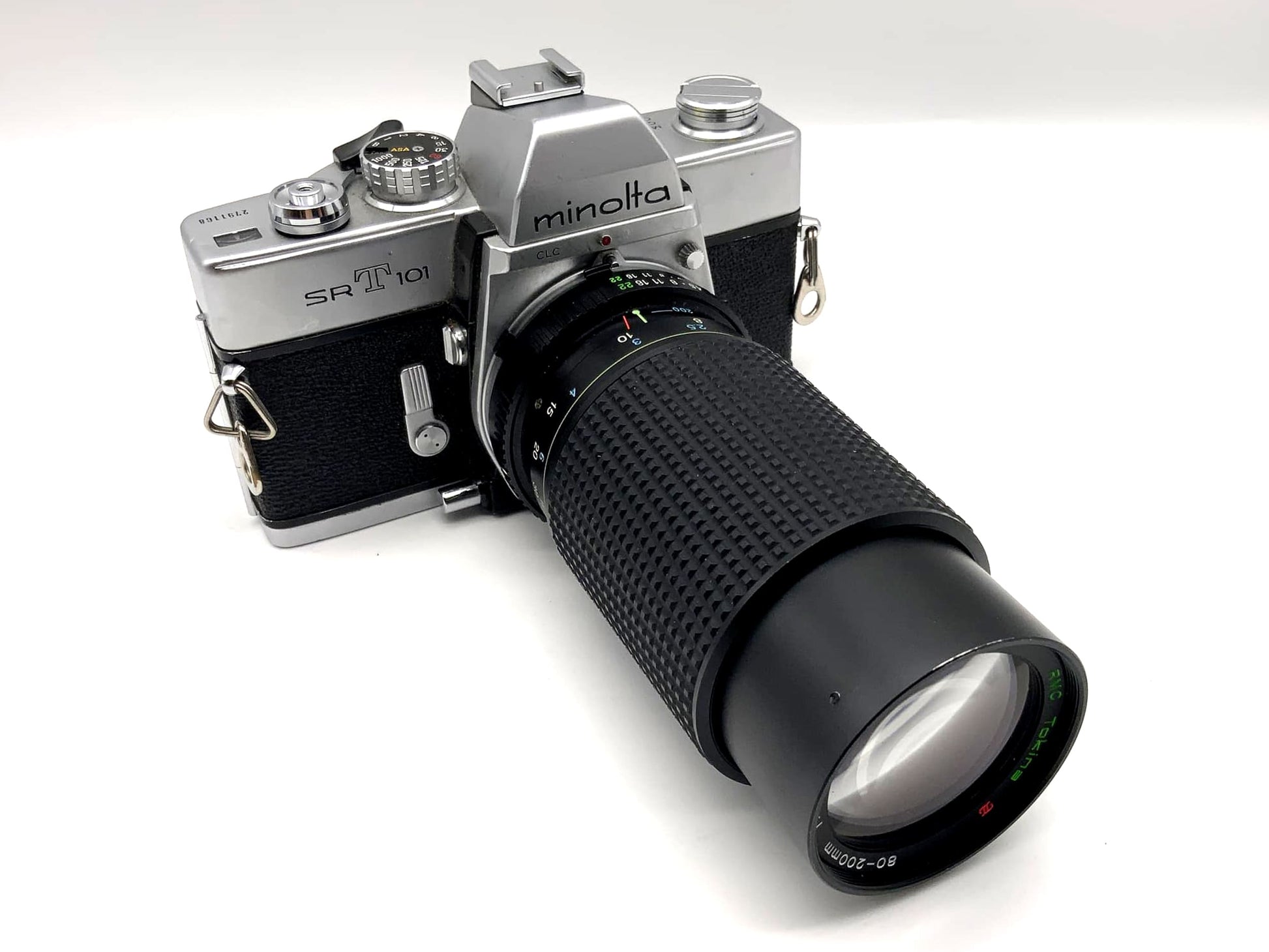 Minolta SRT101 mit Tokina RMC 4.5 80-200mm Spiegelreflexkamera 35mm analog