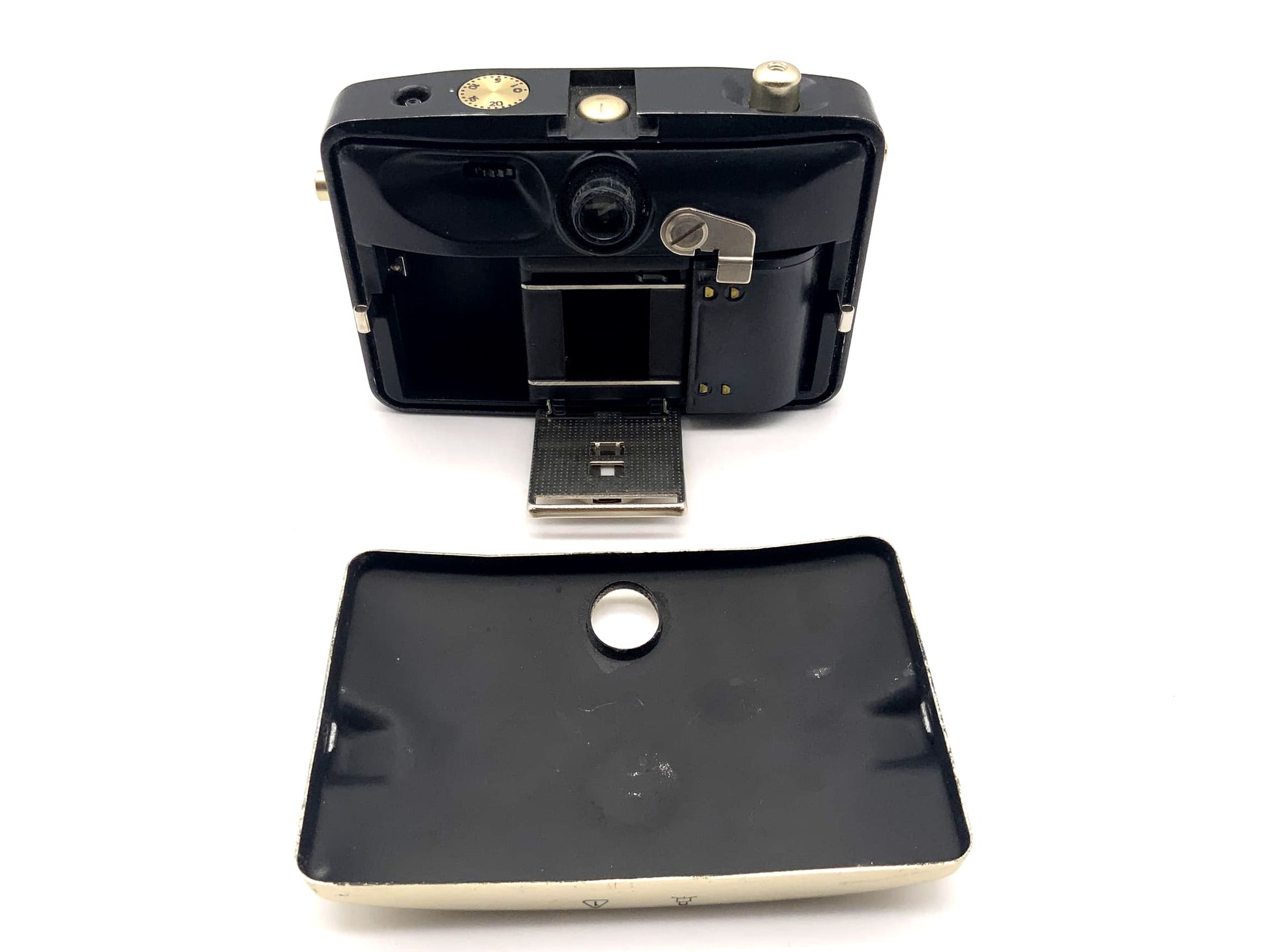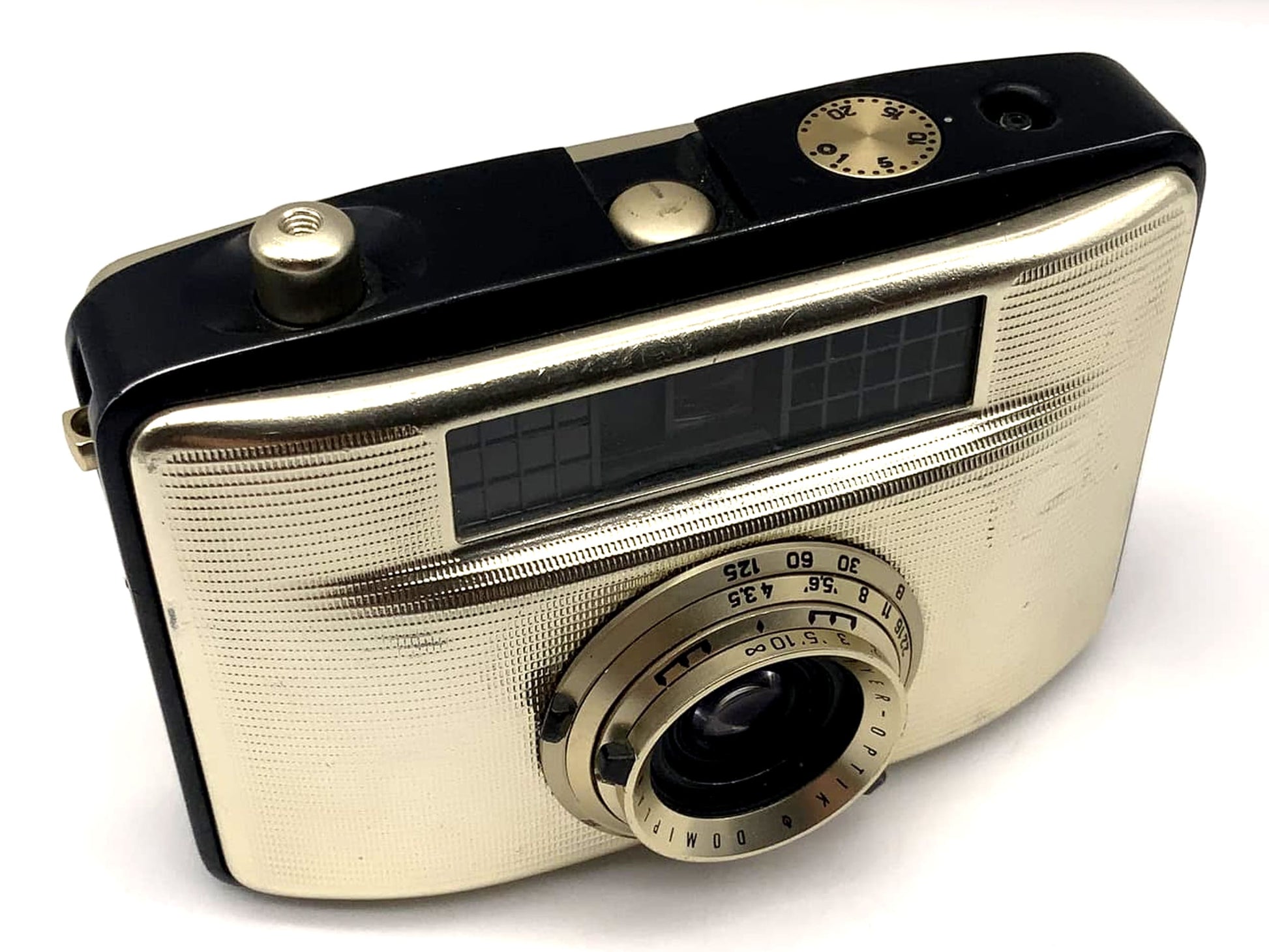 Diese analoge Sucherkamera ist technisch funktionsfähig. Verschluss, Auslöser, Filmtransport und ggf. Belichtungsmesser wurden getestet. Der Zustand wurde aufgrund sichtbarer Gebrauchsspuren – z.B. Kratzer, matte Flächen oder kleinere Dellen – als „Akzeptabel“ eingestuft. Der Sucher kann trüb oder verstaubt sein.
