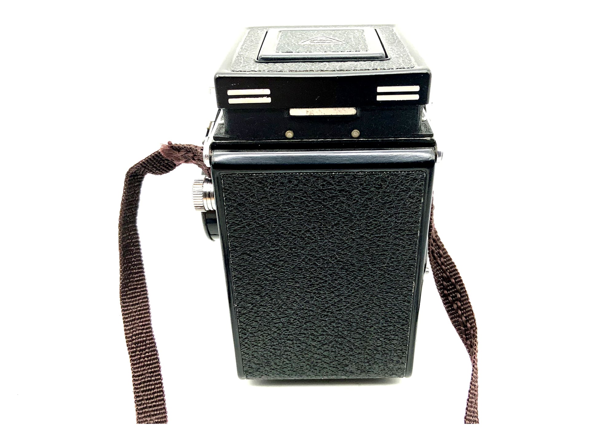 Das Gehäuse zeigt nur leichte Gebrauchsspuren wie feine Kratzer oder dezente Patina – typisch für ein gut erhaltenes Vintage-Modell. Ideal für alle, die echtes Mittelformat-Feeling suchen – ob im Einsatz oder in der Sammlung.