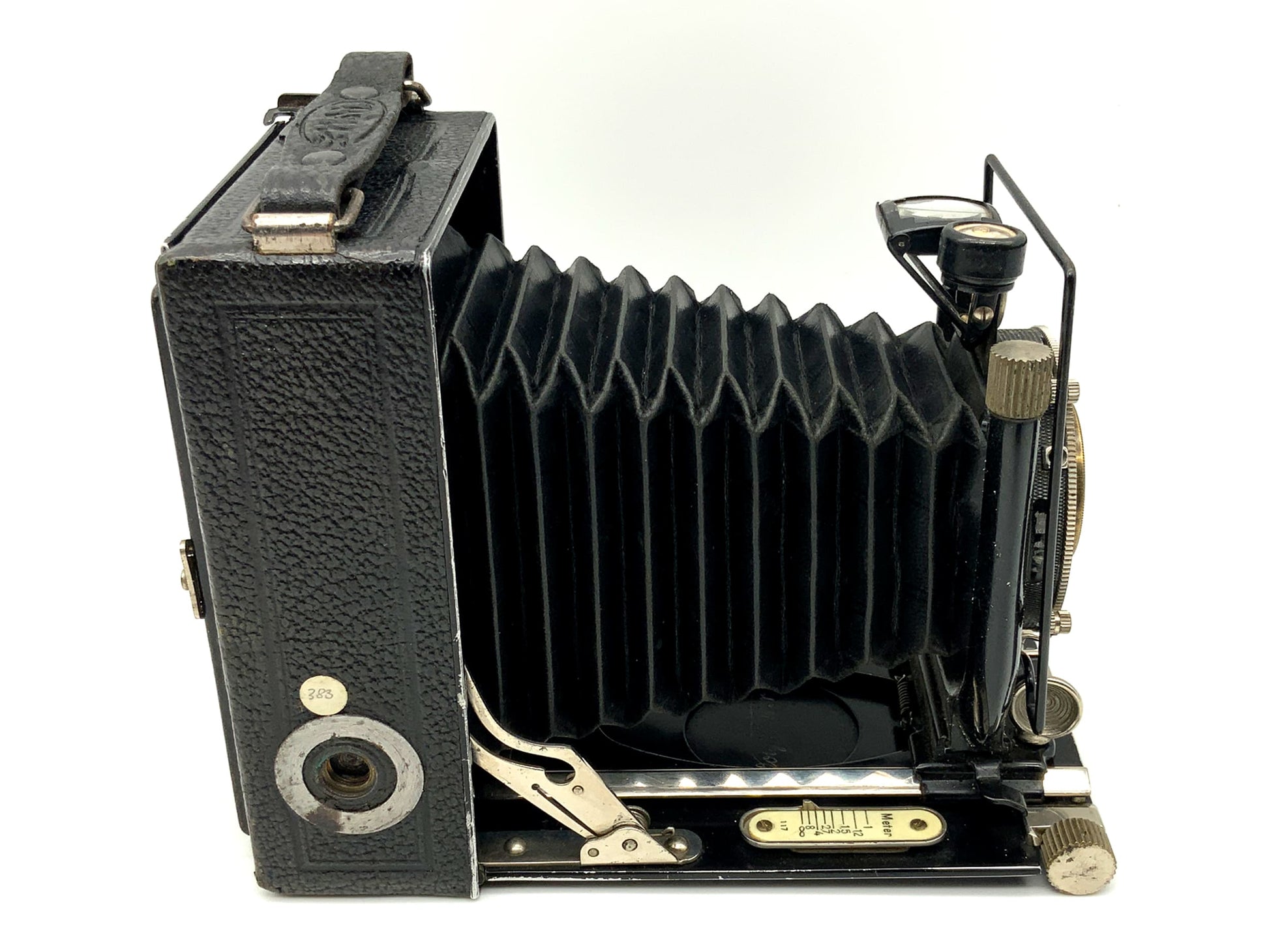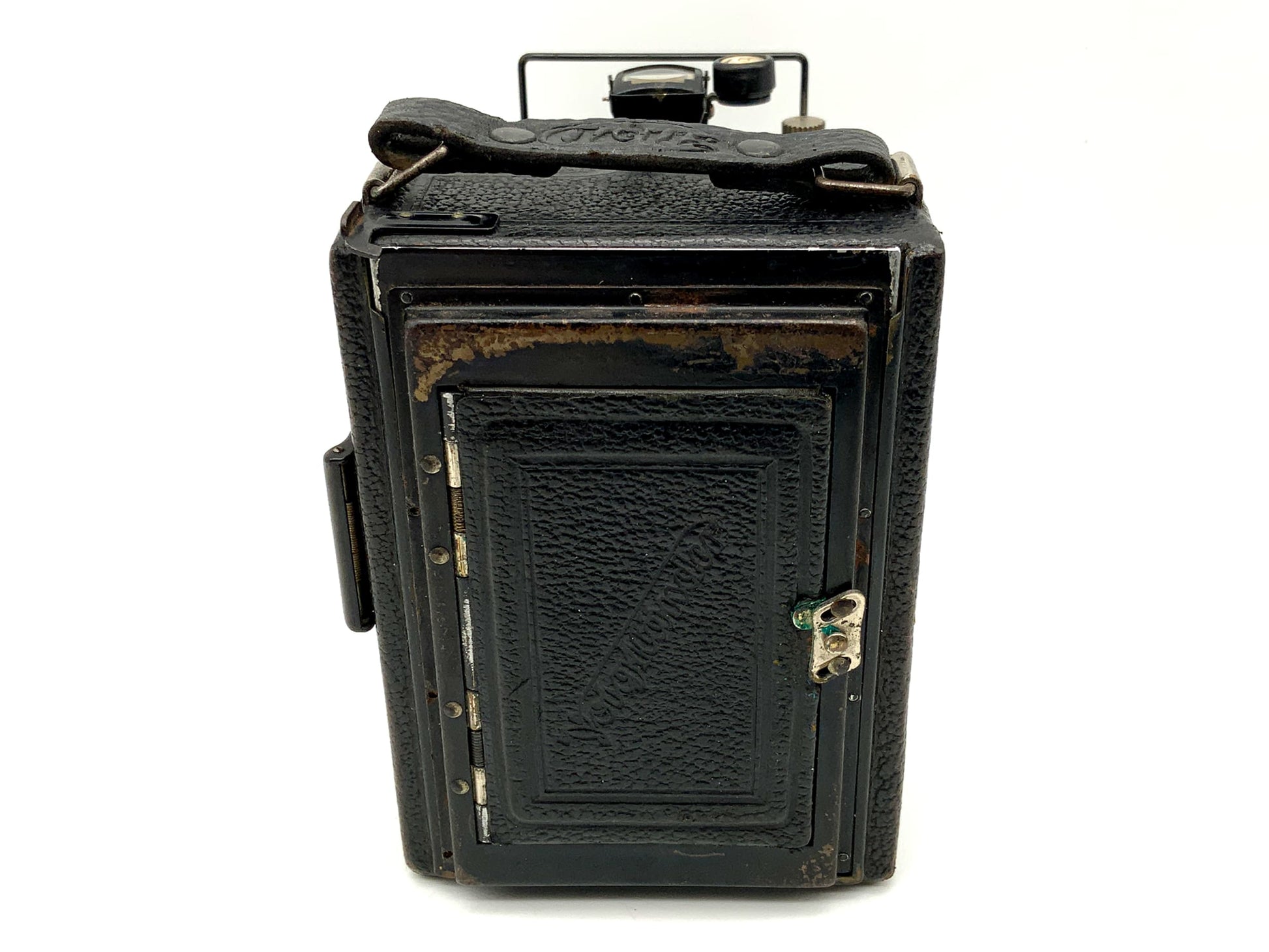 Das Gehäuse zeigt nur leichte Gebrauchsspuren wie feine Kratzer, Patina oder dezente Abnutzung – genau das, was man bei einem gut erhaltenen historischen Modell erwarten darf. Ob für Großformat-Liebhaber, Sammler oder als stilvolles Objekt – diese Kamera überzeugt durch Technik und Präsenz.