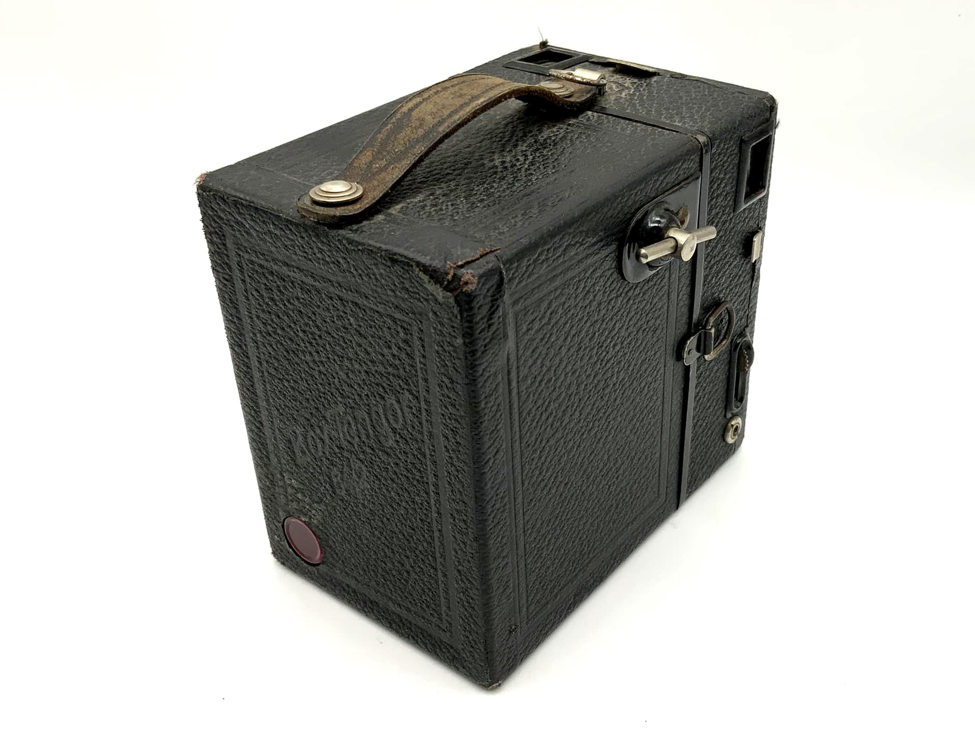 Diese klassische Boxkamera befindet sich im Zustand Defekt. Der Verschluss funktioniert nicht oder nur unzuverlässig – eine vollständige Nutzung ist nicht möglich.